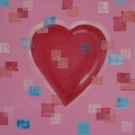 Schilderijen in voornamelijk roze acryl op doek.